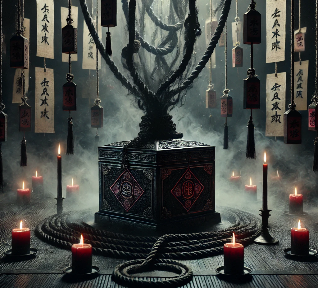 魂縛の術を行う際、術者は標的の魂を象る形代を用意し、そこに呪符を重ねて封じ込める。祭壇には黒塗りの箱が置かれ、その中に呪符とともに依頼者の念が込められる。呪術師が呪言を唱えると、蝋燭の炎が揺れ、空気が張り詰める。やがて形代が黒く染まり、標的の魂に縛りの刻印が刻まれる。これにより、標的の自由は奪われ、定められた運命へと導かれる。